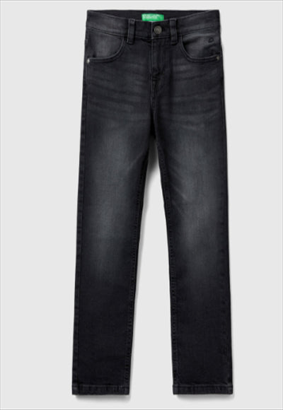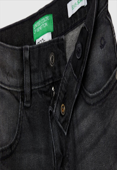 بنطلون طويل بقصّة نحيفة ومظهر متهالك. تصميم بخمسة جيوب، وفتحة بسحّاب وأزرار كبس، وشعار مطرز على الجانب الأيمن العلوي. تحتوي هذه القطعة على 20% على الأقل من القطن المعاد تدويره.