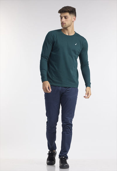 تيشيرت بأكمام طويلة وشعار مخطط هندسي. تركيب النسيج: 100٪ قطن