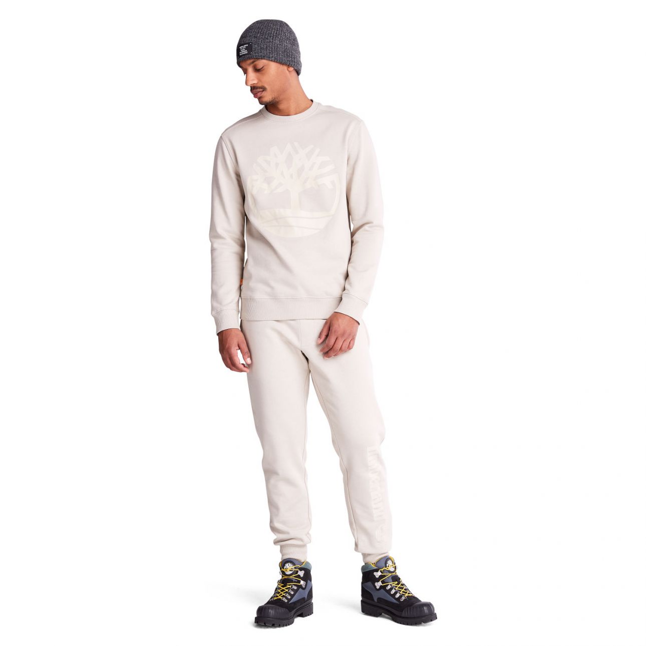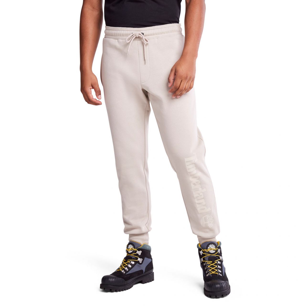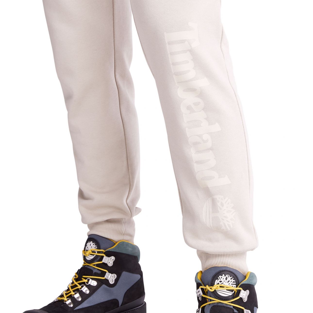 مع طبعة شعار الماركة على الساق الأمامية والأساور في النهاية.