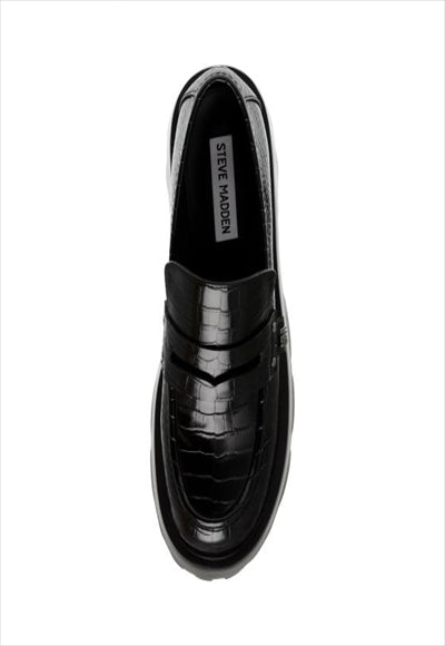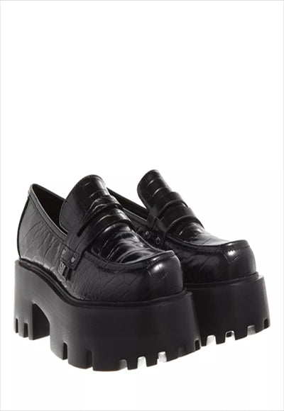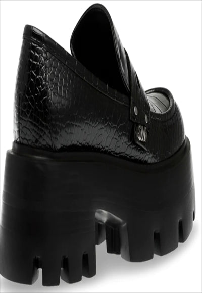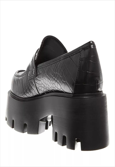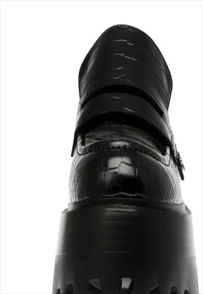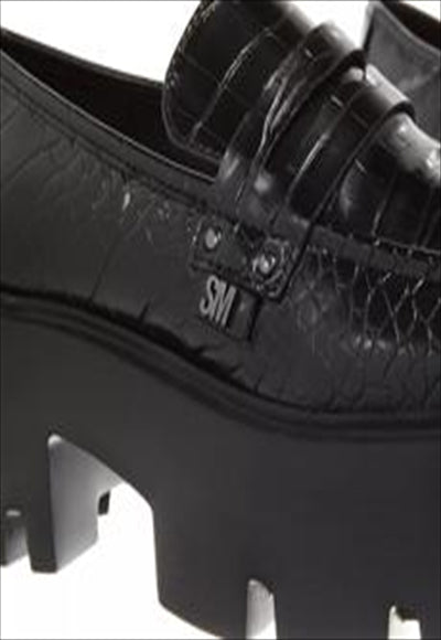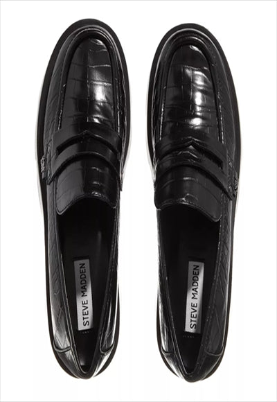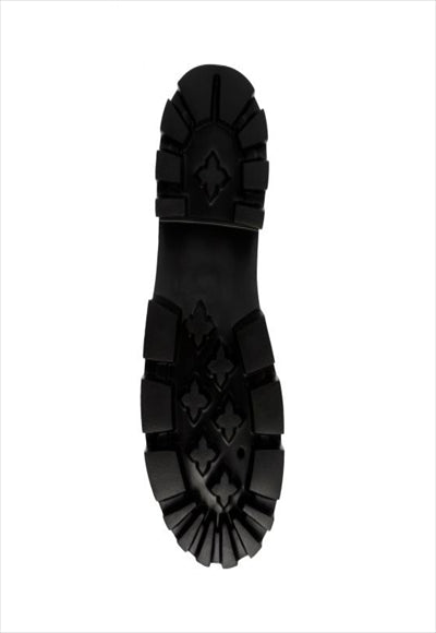 حذاء بدون كعب مصنوع من الجلد ذو هيكل ناعم ونعل مكتنز.