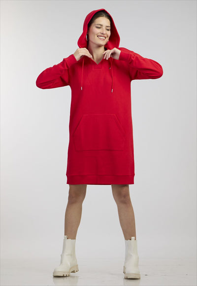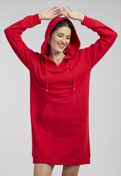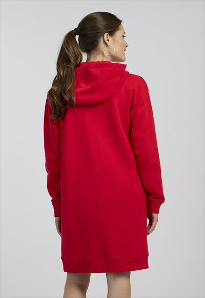 فستان نسائي من النوع الثقيل البحري مع قبعة وشعار مطرز بلونين.