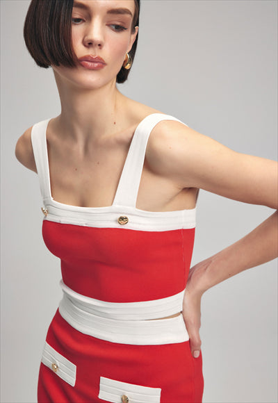 مميزات المنتج مُقَصَّر تريكو أزرار معدنية القماش: ٦٥٪ فيسكوز | ٣٥٪ نايلون الأكمام: بدون أكمام نوع الياقة: ياقة مربعة النمط: سادة مقاس المنتج: ٤٣ القصّة: رفيعة