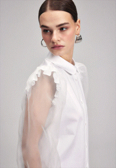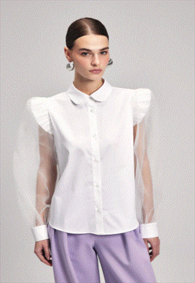 أكمام مفصلة أزرار أمامية أكمام مكشكشة القماش: 97% قطن | 3% لايكرا الأكمام: كم طويل نوع الياقة: ياقة أطفال النمط: سادة مقاس المنتج: 64 القصّة: عادي معلومات المنتج: المنتج المستخدم في الصورة هو مقاس S/36.