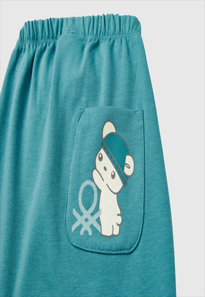 بنطلون طويل من مزيج القطن المطاطي مع ملمس دافئ. رباط داخلي مرن وزخرفي مع شرابات عند الخصر. جيب رقعة على الظهر بطبعة حيوانية وشعار. مريح وسهل التناسق. 78% قطن 17% بوليستر 5% إيلاستان