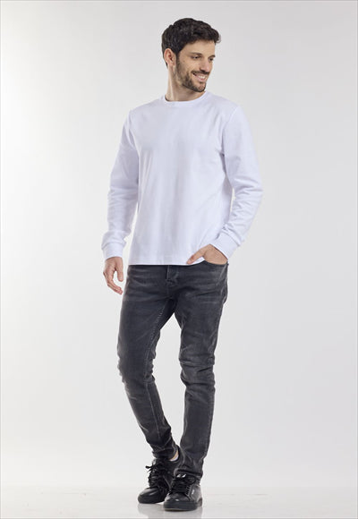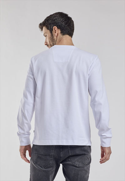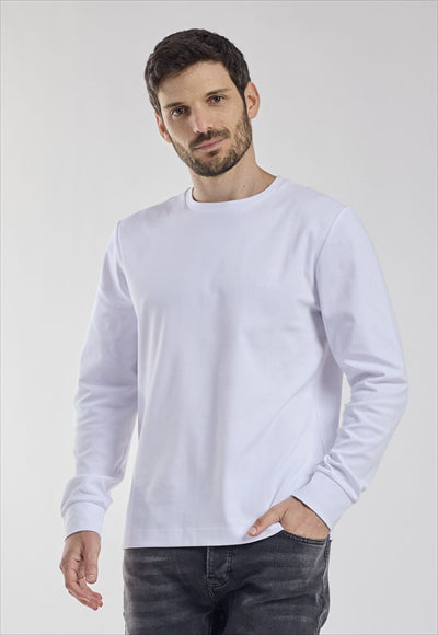تيشيرت بدون خياطة برقبة دائرية وشعار نوتيكا للرجال. تكوين القماش: 100% قطن. ترتدي العارضة مقاس M. طول العارضة 188 سم.