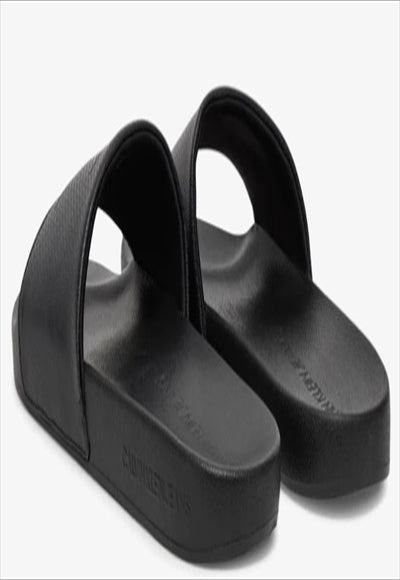 الخامة والعناية الجزء العلوي: خامة عالية الجودة البطانة: صلبة النعل: خامة عالية الجودة لون المُصنِّع: أسود ثلاثي 0GJ نوع الربط: سهل الارتداء نوع مقدمة الحذاء: مقدمة مفتوحة نوع الكعب: مسطح