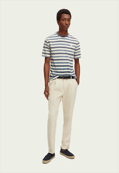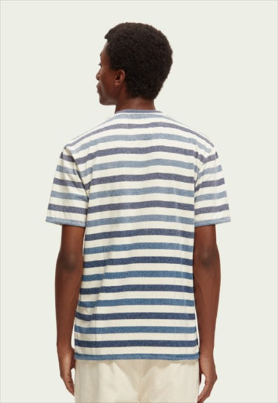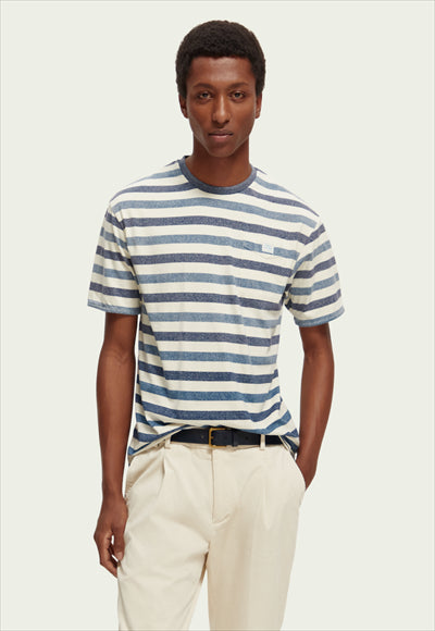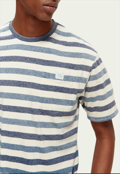 بلوزة بأكمام قصيرة قبة مدورة مخطط جيب صدر قصة عادية