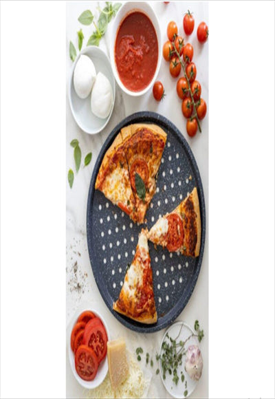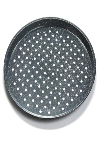 قالب البيتزا مصنوع من الفولاذ الكربوني مع طلاء عالي الجودة غير لاصق، مما يمنع الطعام من الالتصاق. القطر 35 سم