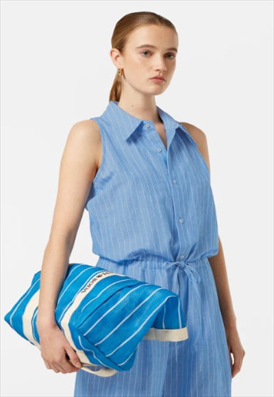 جمبسوت كتان مخطط بتفاصيل مُصممة بعناية وقوام مُتناسق. ٧٠٪ قطن ٣٠٪ كتان غسل آلي: ٣٠ درجة مئوية، مناسب للأقمشة الرقيقة