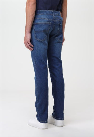 هذا الجينز الضيق مصنوع من قماش الدنيم المريح المعاد تدويره بنسبة 100% مع تأثير باهت ومطاط قليلاً.