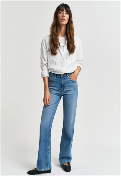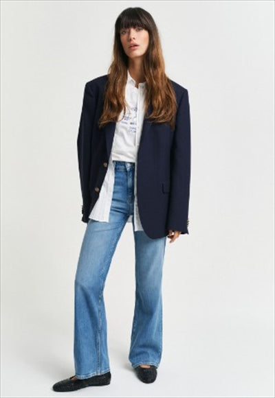 مصنوع من قطن ناعم مع قماش مطاطي مريح، هذا الجينز بقصّة "سليم فيت" يناسب الوركين بشكل مريح ويتسع عند الساق. يتميز بخصر متوسط الارتفاع، وإغلاق بزر وسحاب، ومزين برقعة جلدية تحمل شعار الشركة على حزام الخصر الخلفي.