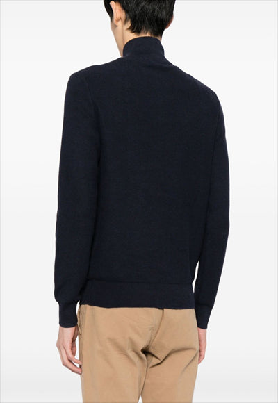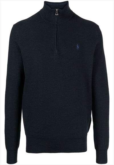 سويت شيرت من القطن، محبوك بشكل جيد، مزين بشعار بولو بوني المميز، رقبة عالية، إغلاق بسحاب أمامي قصير، وأكمام طويلة.