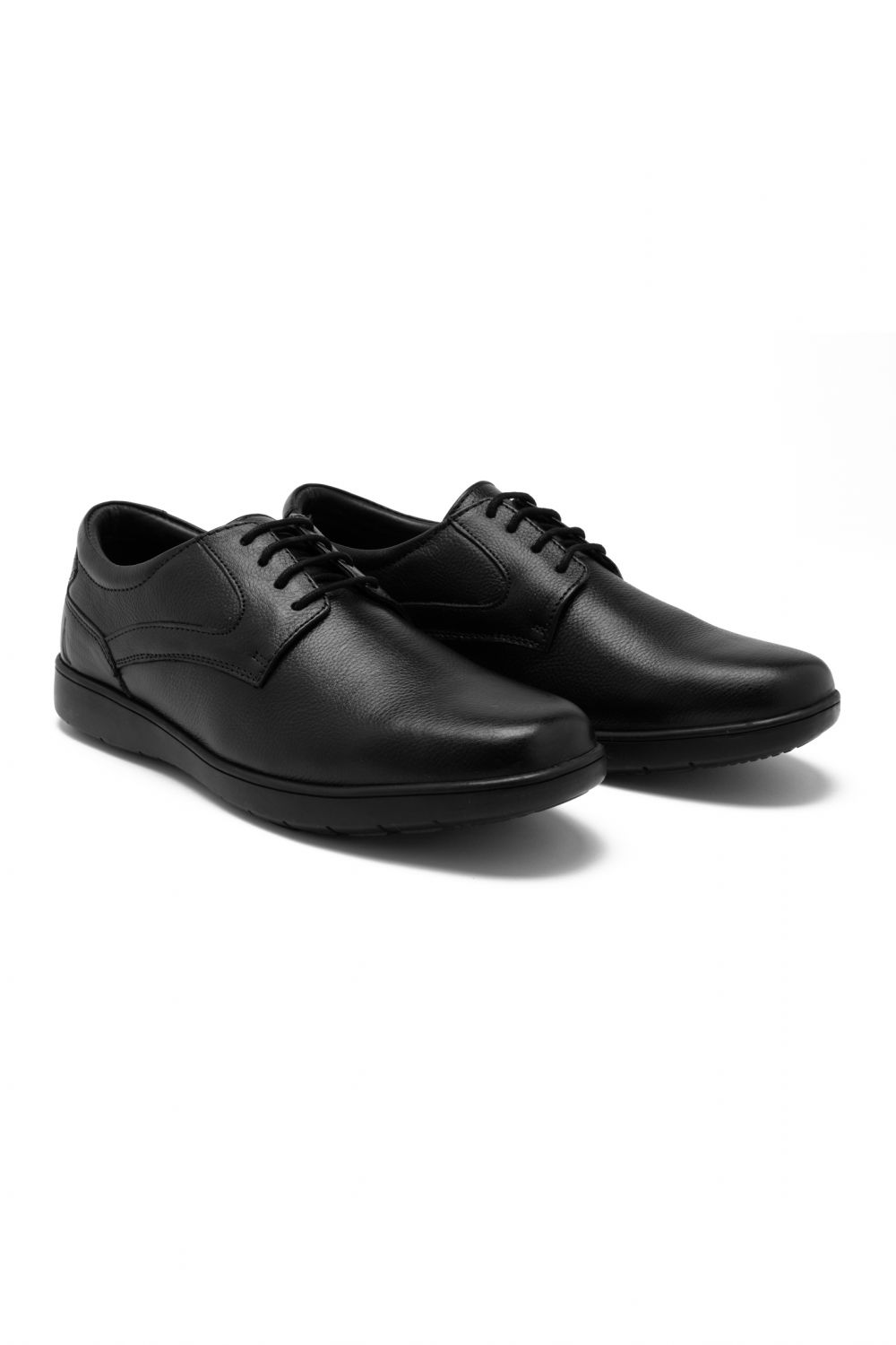 حذاء جلد مريح للرجال برباط ونعل مسطح.