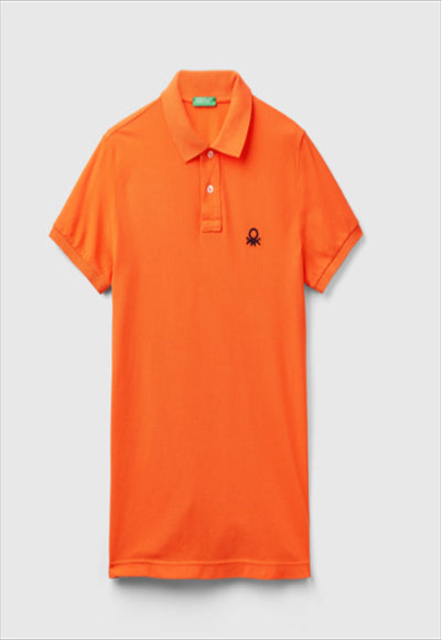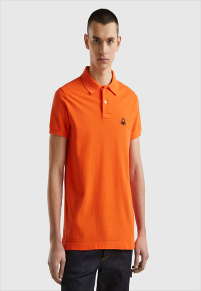 قميص بولو بأكمام قصيرة مصنوع من القطن العضوي بنسبة 100% بمقاس نحيف. خزانة ملابس كلاسيكية غير رسمية مع ياقة وفتحات في الأسفل، ومزينة بشعار مطرز على الصدر.