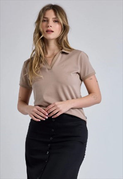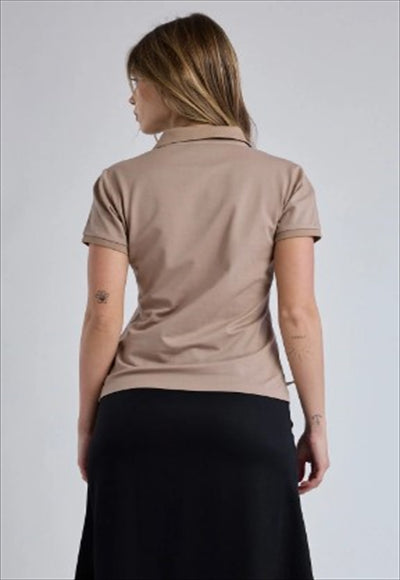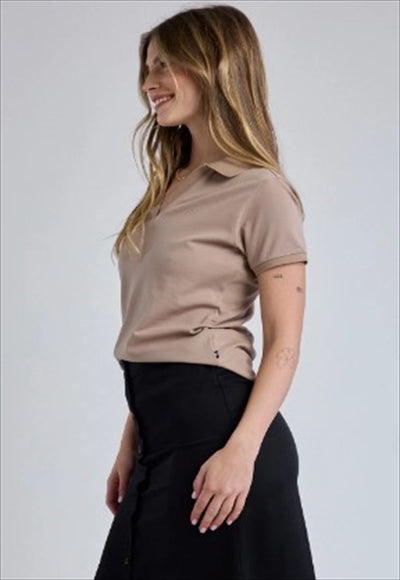 قميص بولو نسائي من نوتيكا، بمظهر أنيق، مصمم بأسلوب رياضي أنيق بأكمام قصيرة وياقة وفتحة رقبة على شكل حرف V وتطريز شعار الماركة.