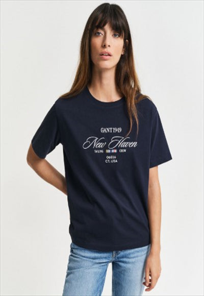 صُمم هذا التيشيرت القطني بقصّة مريحة، ويتميّز بياقة دائرية كلاسيكية. مُزيّن بتطريز غرافيكي لشعار GANT على الصدر، ومُزيّن بتفاصيل مُضلّعة. صُمّم هذا الثوب بقصّة مريحة. للحصول على قصّة أدقّ، ننصح باختيار مقاس أصغر