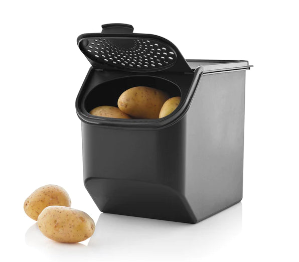 يوفر Potato Smart بيئة مثالية لإطالة عمر الخضروات الجذرية. تتيح الحاوية تخزين البطاطس والبطاطا الحلوة بشكل أكثر صحة وسهولة. تضمن حشية التهوية تدفق الهواء الحر لإطالة عمر الخضروات ، ويقلل التحكم في الرطوبة من عمليات الإنبات والتعفن. قاعدة الحاوية عميقة ومعتمة باللون الأسود ، وذلك لحجب أشعة الشمس التي قد تؤدي إلى تدهور جودة الطعام المخزن. يمكن تكديسها مع وعاء البصل.