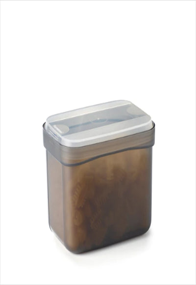 تحتوي الحاويات على أغطية شفافة تتيح لك التعرف بسرعة على محتوياتها ، ويمكن فتحها بسهولة عن طريق الضغط بإبهامك على الدائرة الخشنة على جانب واحد من الغطاء والسحب بأطراف أصابعك على الجانب الآخر. للإغلاق ، ضع الغطاء على الحاوية واضغط لأسفل بإبهامك على كلا الجانبين في نفس الوقت.