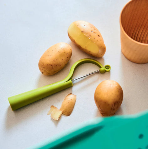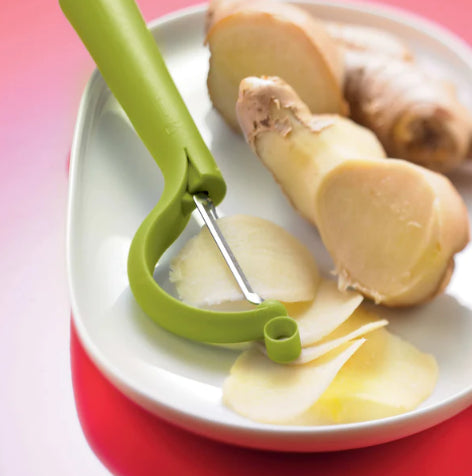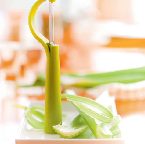 تتميز المقشرة العمودية بمقبض مريح وناعم ومناسب للاستخدام باليد اليمنى واليسرى. تحتوي المقشرة على شفرات حادة مصنوعة من الفولاذ الكربوني سويسري الصنع تزيل القشرة السميكة بسهولة ، لذا فهي مثالية لتقشير الخضار القاسية مثل الجزر والبطاطس (مع مزيل عين البطاطس في الأعلى) ، وحتى الفواكه الحمضية. يمكن أن يقف المقبض العريض عموديًا عندما لا يكون قيد الاستخدام ، مما يوفر مساحة في أدراج مطبخك.