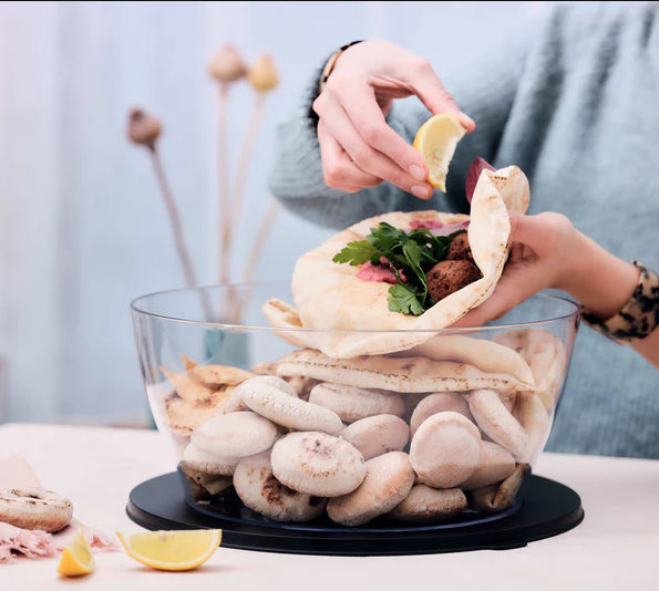 مجموعة الأواني الشفافة نجمة على أي طاولة ، والأوعية الأنيقة تشبه الزجاج تمامًا. الأغطية محكمة الإغلاق ضد الهواء والسوائل ، لذا يمكنك أخذ الأوعية معك في أي مكان دون خوف. يمكن تخزين الأوعية والأغطية داخل بعضها لتوفير المساحة. الحجم 6 لتر مناسب بشكل خاص للسلطات الخضراء والأطباق الكبيرة ، وهو مثالي كوعاء فواكه أو سلة خبز.