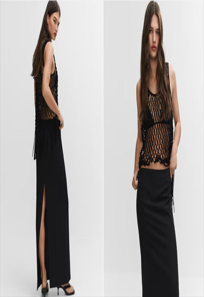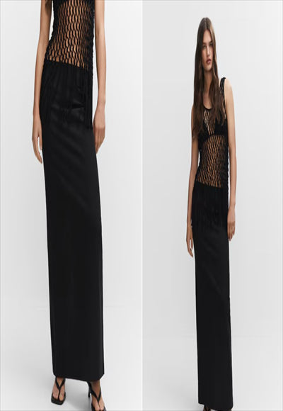 قماش مزيج من الرامي والقطن. تصميم مستقيم. تصميم طويل. سحاب للإغلاق على الجزء الخلفي. حاشية ذات شق خلفي.