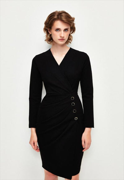 أزرار معدنية مزدوج الصدر ضيق القماش: 68% رايون| 27% نايلون| 5% سباندكس الكم: كم طويل نوع الياقة: رقبة على شكل حرف V