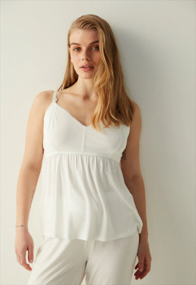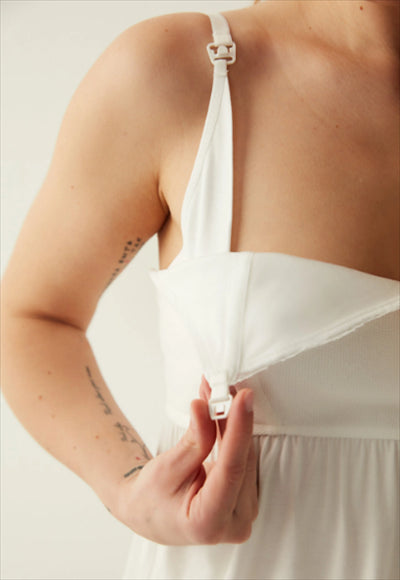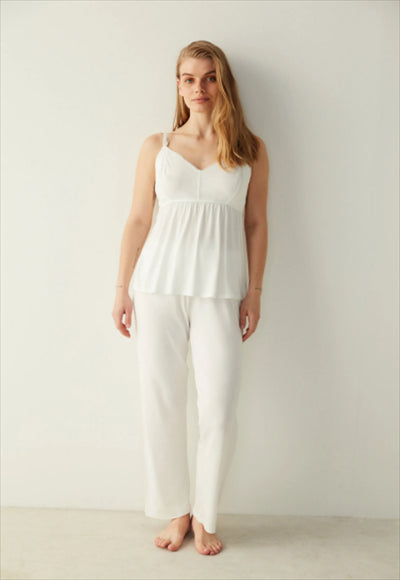 طقم بنطلون ماما أوف وايت ، صنع خصيصًا للأمهات ، ويوفر تجربة مريحة مع وظيفة الرضاعة الطبيعية وتجعلك تشعر بالراحة طوال اليوم.