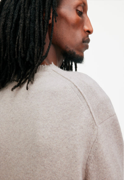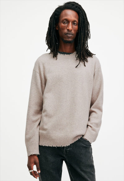 تم تصميم هذه السترة لتناسب المقاس العادي طاقم الرقبة أكمام طويلة تفاصيل ممزقة على الياقة والأصفاد والحاشية درزات كتف خلفية منسدلة خارجية حواف مضلعة