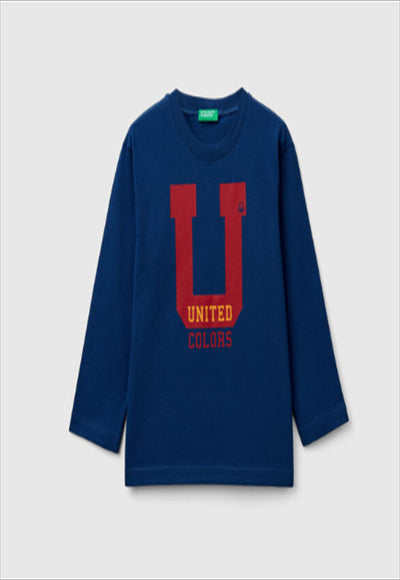 تي شيرت بأكمام قصيرة ورقبة دائرية من القطن الخالص. مقاس عادي وطباعة شعار على الجهة الأمامية. مثالي مع بنطال جينز.