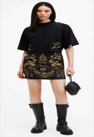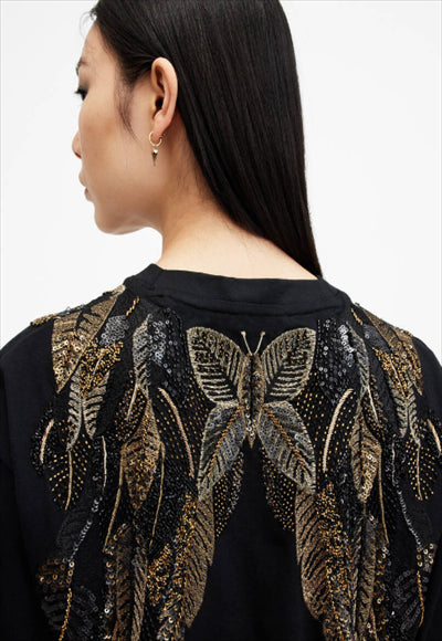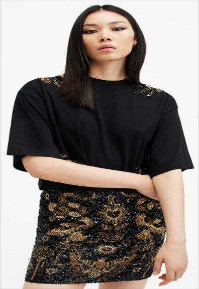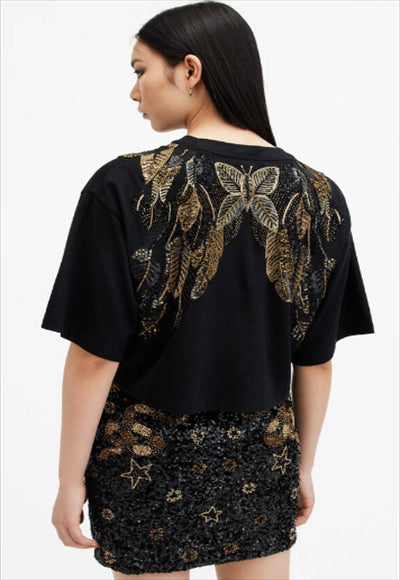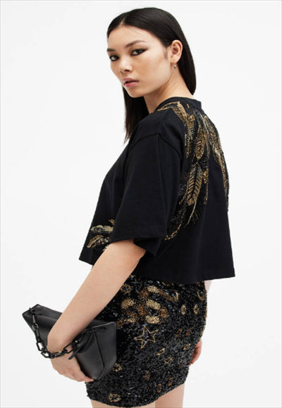 بلوزة اكمام قصيرة مع رسومات متعدده في الخلف بالخرز