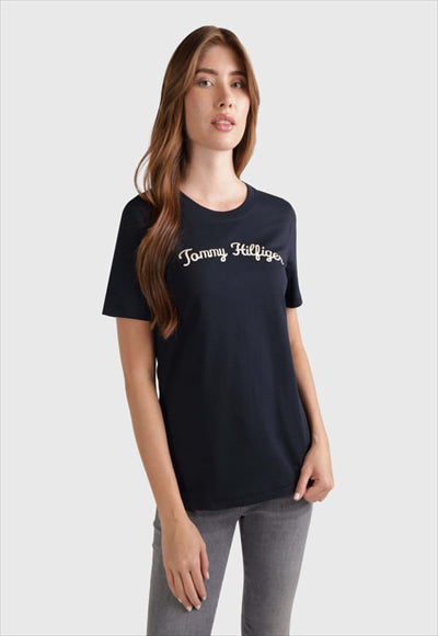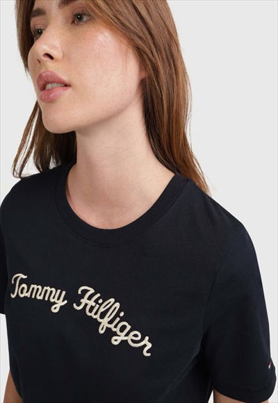 ياقة بولو فتحة بأربعة أزرار شعار تومي هيلفيغر تطريز علم تومي هيلفيغر على الصدر
