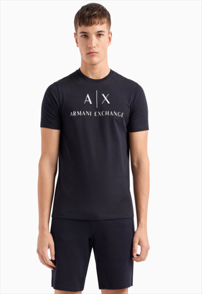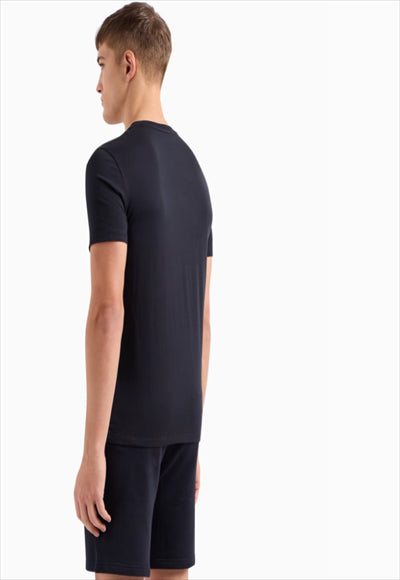 تيشيرت بقصّة "سليم فيت" مصنوع من قطن الجيرسيه، بشعار متباين على الجهة الأمامية. ياقة دائرية وأكمام قصيرة.