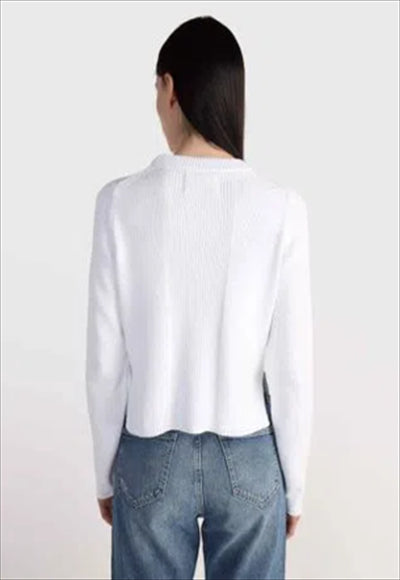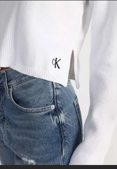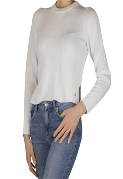 بلوزة كم طويل صوف ناعم مع خطوط طويلة في المنتصف و لوجو عند الطرف