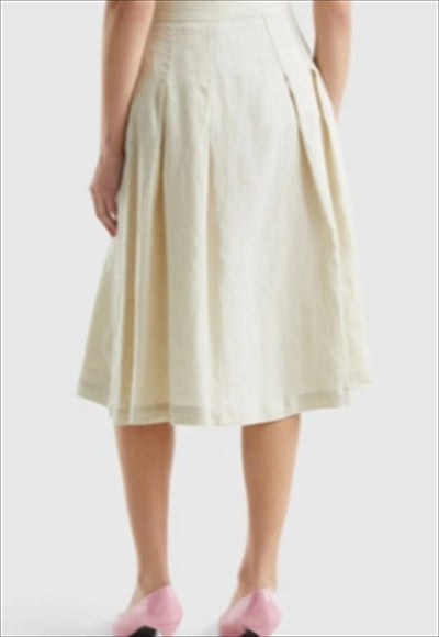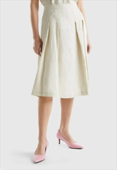 تنورة واسعة باللون البيج بقصّة عالية مصنوعة بأسلوب كلاسيكي من مجموعة ماركة بينيتون.