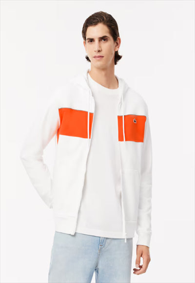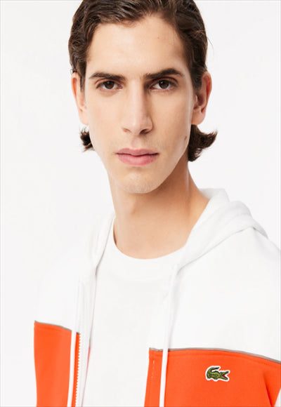 الصوف القطني ملائمة كلاسيكية لسهولة طبيعية لوحة ملونة مركزية مخيطة جيب الكنغر تمساح مطرز على الصدر الهيكل الخارجي: قطن (100%) / حافة مضلعة: قطن (98%)، إيلاستان (2%)