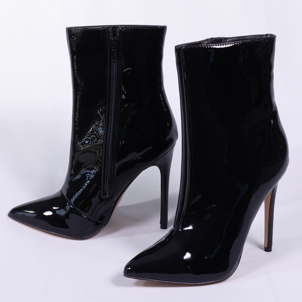حذاء طويل جزئه العلوي مكون من جلد صناعي (PU) متين ولامع