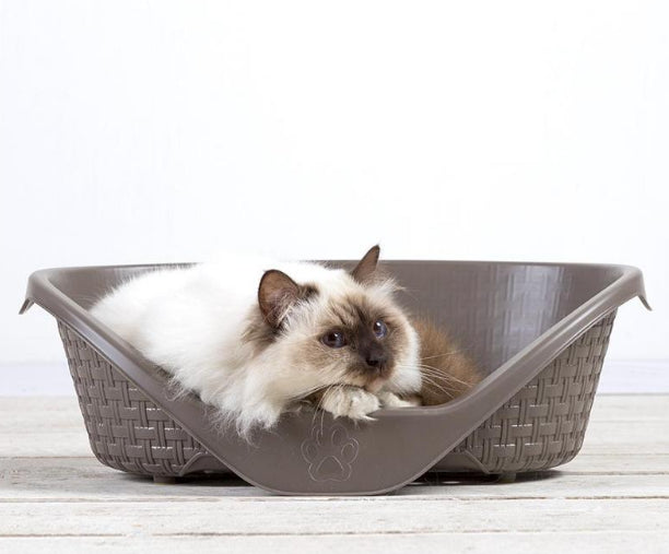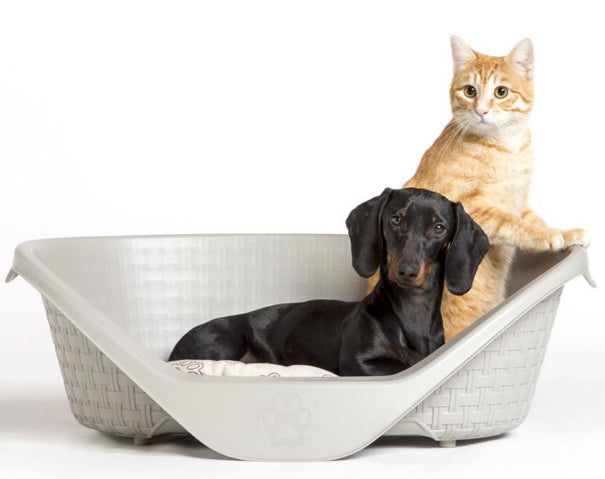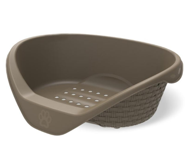 سرير للقطط والكلاب مخطط بتصميم مريح يجعل باقي حيواناتك الأليفة أفضل ، يحتوي على قاعدة قابلة للتنفس لتهوية أفضل وأقدام مقاومة للانزلاق سهلة التنظيف وله تصميم أنيق بزخرفة من الروطان