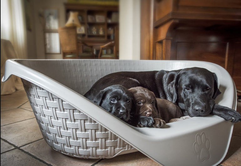سرير للقطط والكلاب مخطط بتصميم مريح يجعل باقي حيواناتك الأليفة أفضل ، يحتوي على قاعدة قابلة للتنفس لتهوية أفضل وأقدام مقاومة للانزلاق سهلة التنظيف وله تصميم أنيق بزخرفة من الروطان.