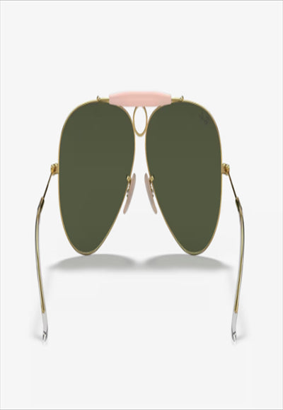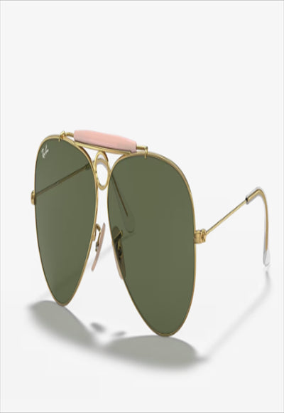 توفر نظارات Ray Ban Aviator Shooter الشمسية لمسة عتيقة وفريدة من نوعها لنظارة Aviator Classic. تماشيًا مع تاريخ Aviator، الذي تم تصميمه للطيارين، تم تصميم Aviator Shooter RB3138 بميزات إضافية مستوحاة من الطيران مثل فتحة الرصاصة في وسط الإطار وخاصة الأذرع الرفيعة لتعزيز الرؤية المحيطية الواسعة. تم تصميم هذه النظارات الشمسية العتيقة بجسر مزدوج وشريط حواجب من الأسيتات وعدسات طيار تقليدية