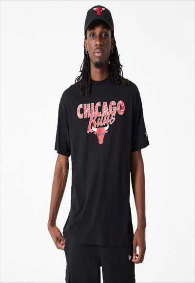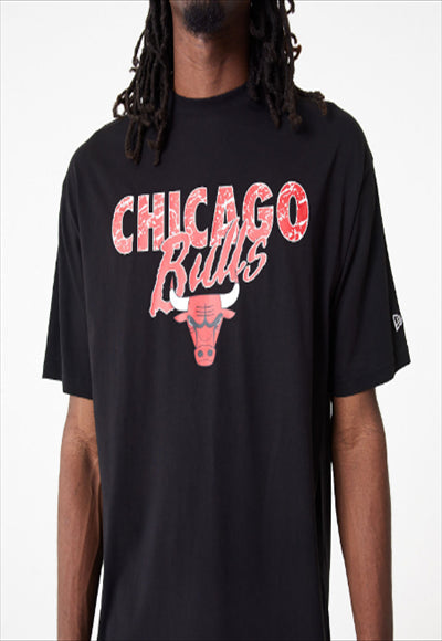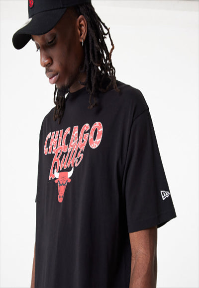 تي شيرت Team Script Chicago Bulls كبير الحجم شعار شيكاغو بولز على الصدر الأيسر علم العصر الجديد على الكم الأيسر مقاس كبير 100٪ قطن