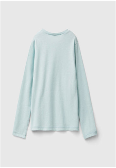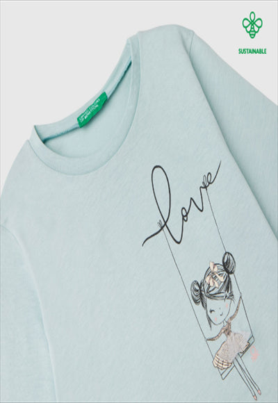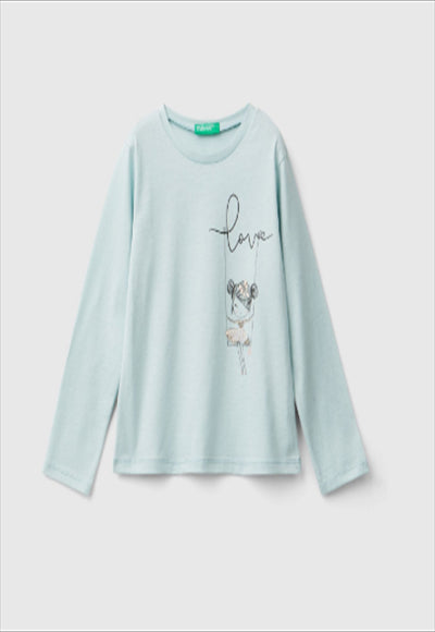 تي شيرت بأكمام طويلة من القطن العضوي الخالص الناعم. قصة واسعة قليلاً ورقبة دائرية. طباعة لطيفة على الجهة الأمامية مع تطريز من التول. مريح ورومانسي.