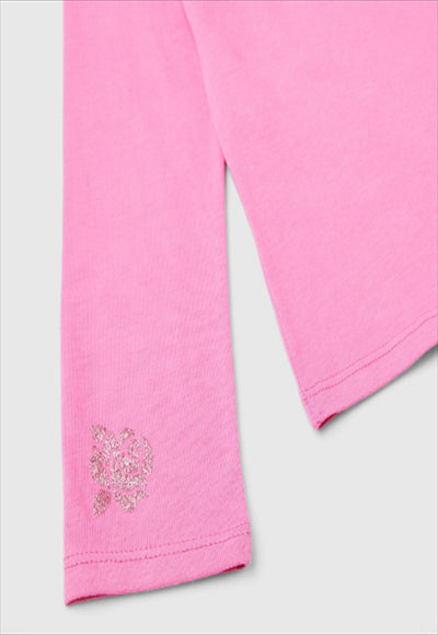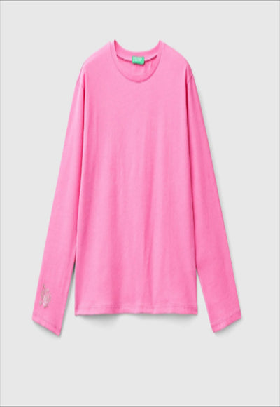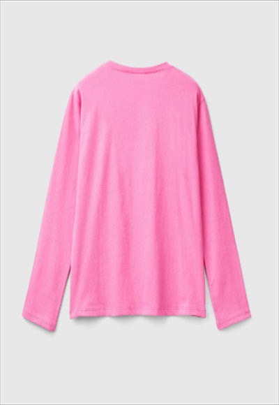 تي شيرت بأكمام طويلة من نسيج قطني عضوي نقي ناعم. رقبة دائرية وطبعة لامعة على الجهة الأمامية. قطعة لامعة للارتداء اليومي.