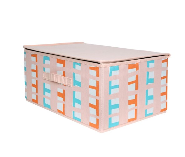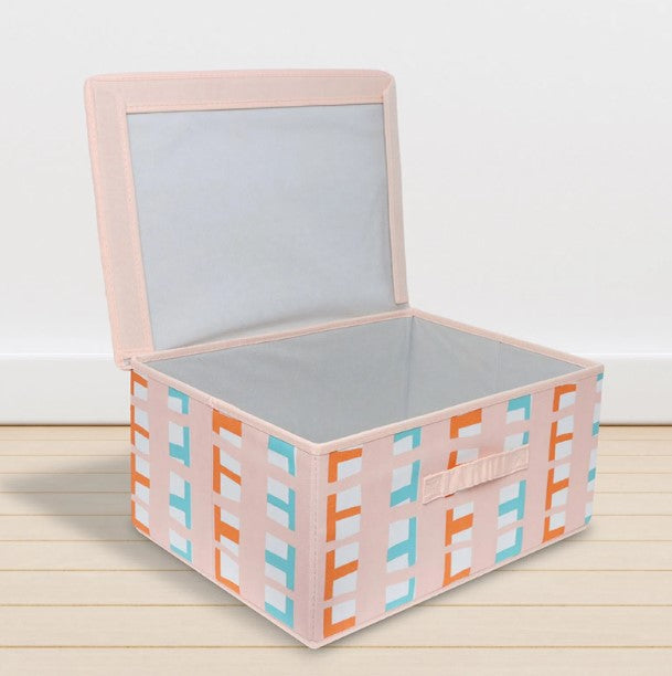 صندوق تخزين قماش مع غطاء حجم كبير لون زهري