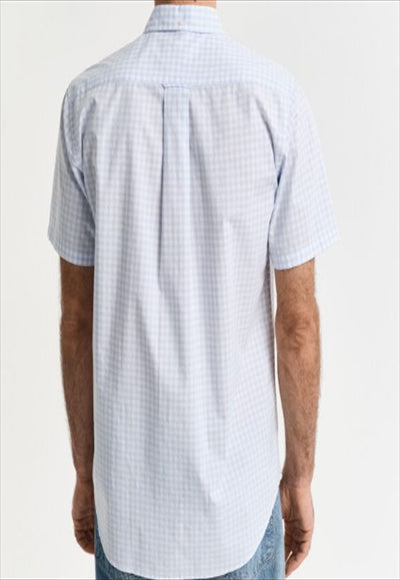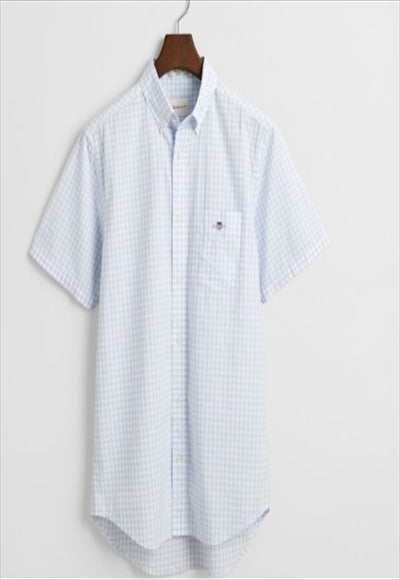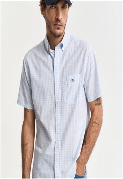 أضف لمسةً عصريةً إلى مجموعة قمصانك مع هذه القطعة المصنوعة من قماش البوبلين القطني والمزخرفة بنقشة المربعات المربعة. صُمم هذا القميص بقصّة عادية وأكمام قصيرة لأشهر الصيف الدافئة. يتميز بياقة بأزرار، وحاشية منحنية، وجيب على الصدر مطرز بتطريز درع، وثنية مربعة مع حلقة قفل في الخلف.