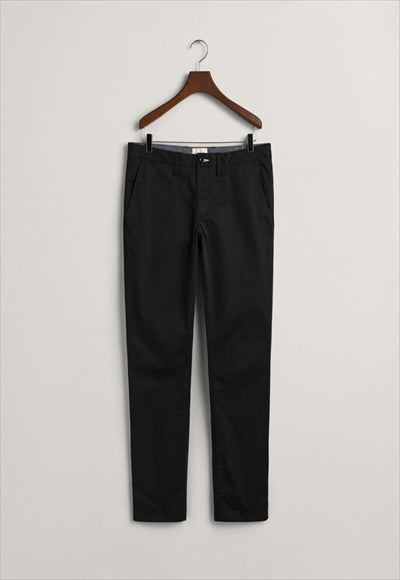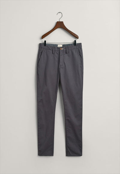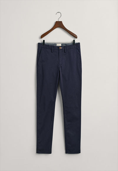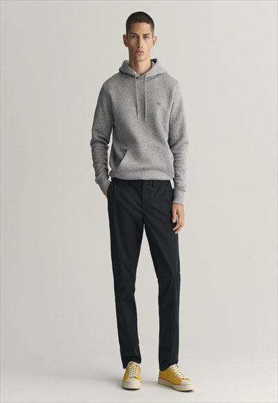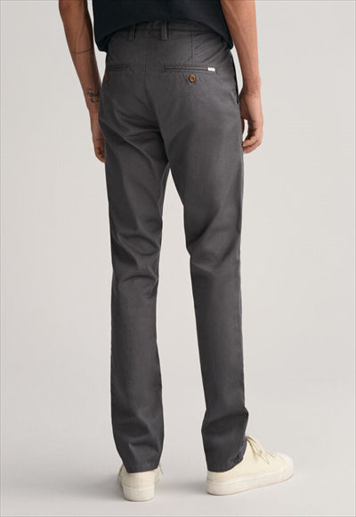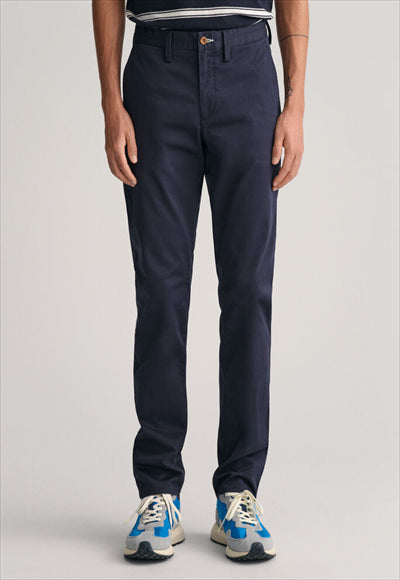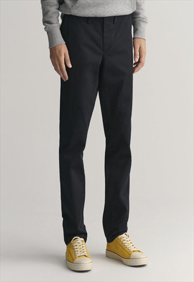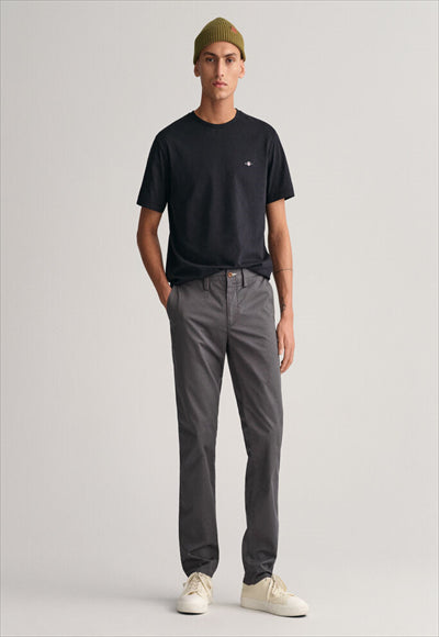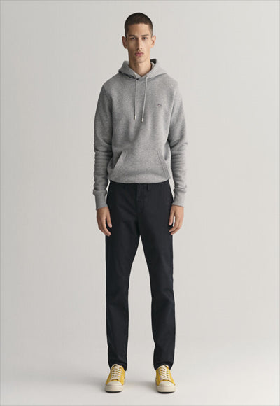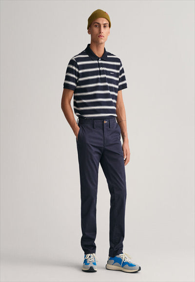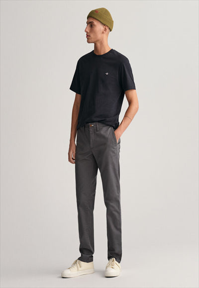 مصنوع من نسيج قطني عضوي مع لمسة من التمدد، يتميز هذا البنطلون بقصة ضيقة من الوركين إلى الساق. مفصلة بجيوب خلفية بأزرار وشعار GANT على الجيب الخلفي الأيمن، يمكنك ارتداؤها مع أي شيء بدءًا من تي شيرت مريح إلى قميص أكثر أناقة بأزرار سفلية.