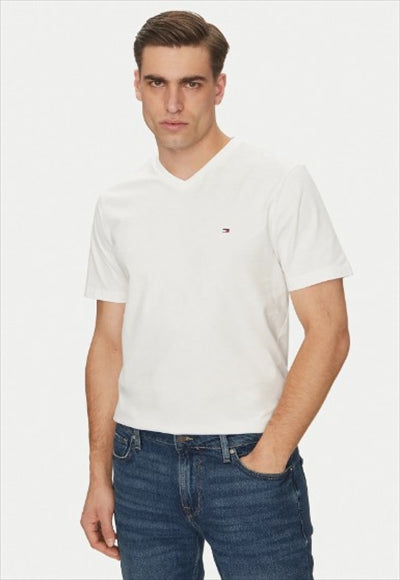 بلوزة قطن كم قصير مع ياقة على شكل v