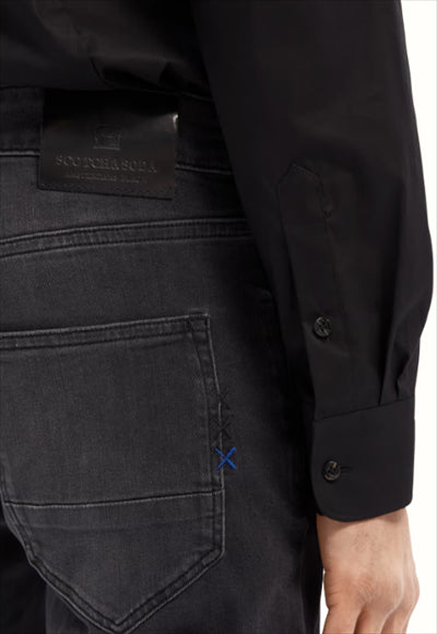 بنطال Skim فائق النحافة، ملائم للجسم من الخصر إلى الكاحل. بفضل مزيج من الإيلاستين، أصبح هذا التصميم النحيف مريحًا طوال اليوم. مغسول بلون رمادي غامق، ومزين بتفاصيل خاصة على شكل مسمار على شكل عملة معدنية وسحاب. ارتفاع متوسط طول عادي تصميم بخمسة جيوب سحاب 92% قطن/6% بوليستر/2% إيلاستين الغسيل