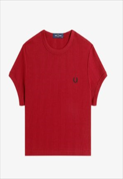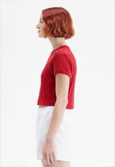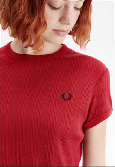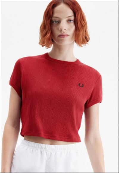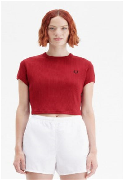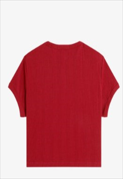 تيشيرت بياقة دائرية وقصة ضيقة عند منتصف الخصر.