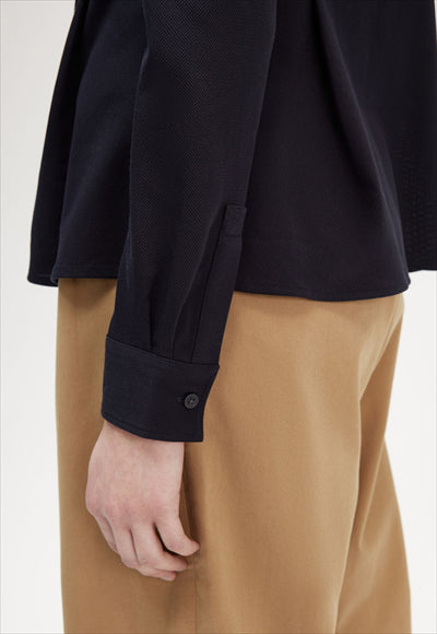 قميص شبكي من القطن يجمع بين التفاصيل التقليدية والشكل العصري.