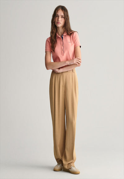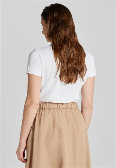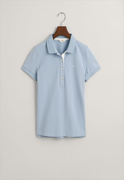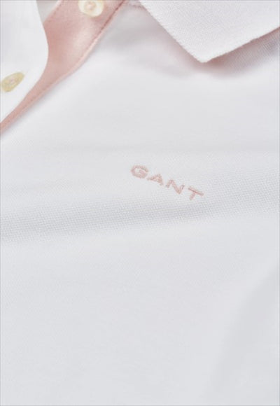 قميص بولو بيكيه كلاسيكي بلمسة مميزة. مصنوع من مزيج قطني ناعم، يتميز بقصّة عادية، ولوحة متباينة اللون أسفل الياقة، وأزرار تحمل شعار غانت، وفتحات جانبية عند الحافة. ​​مُطرّز بشعار غانت الشهير على الصدر.